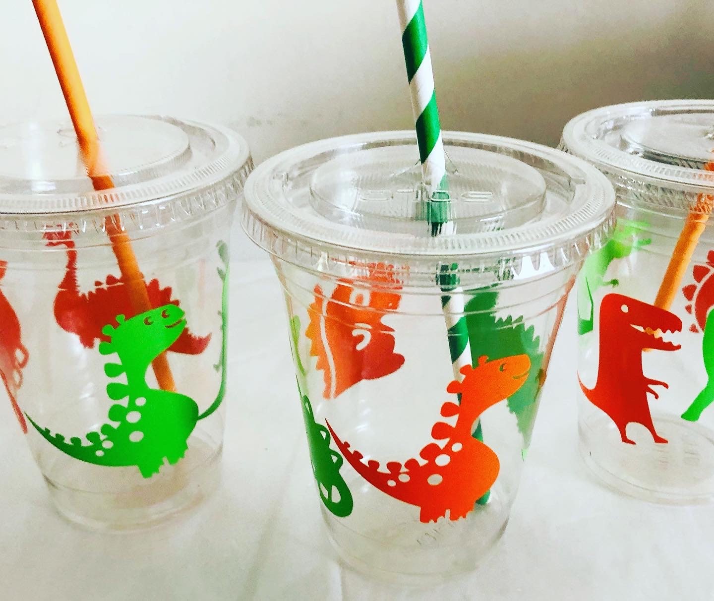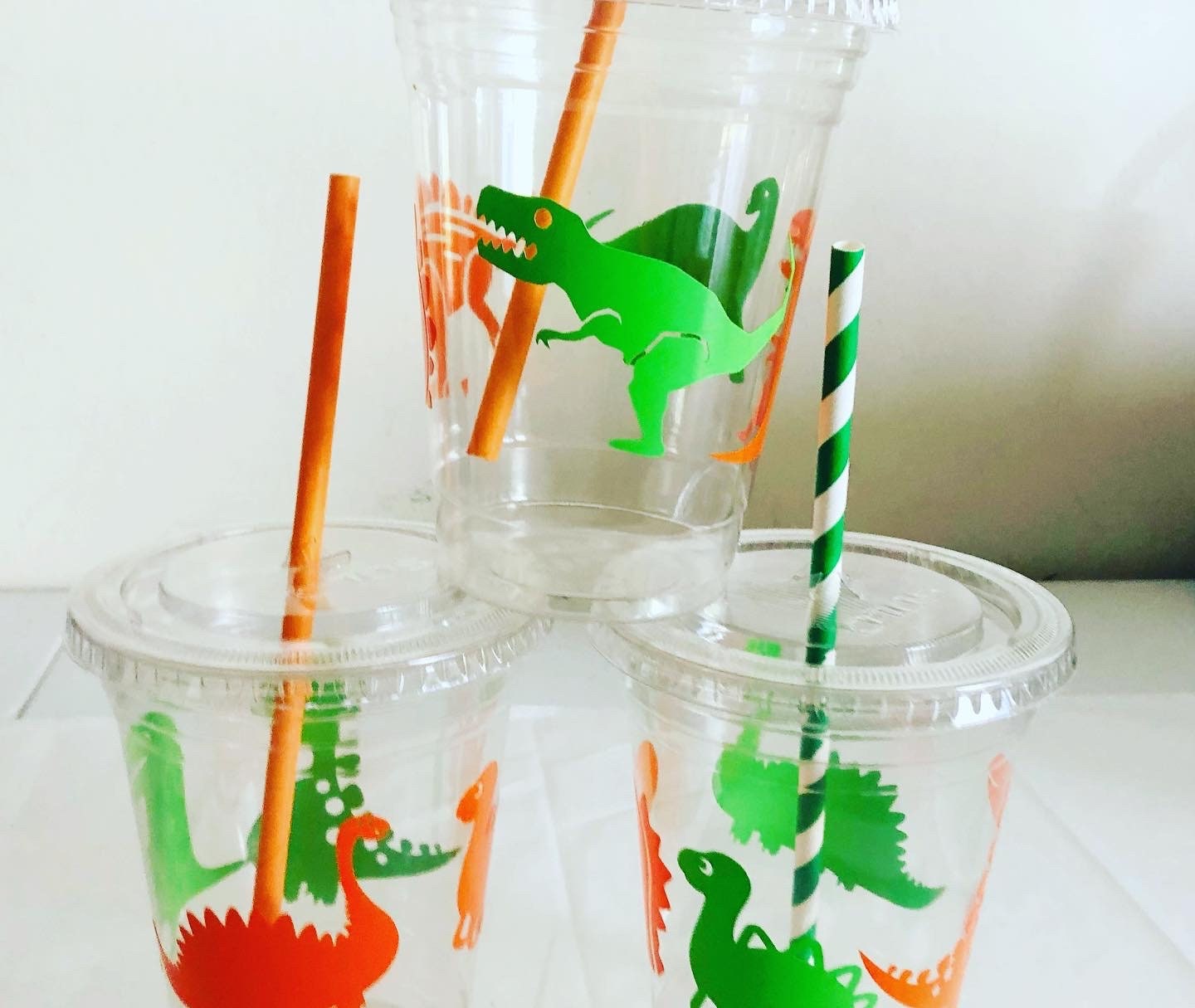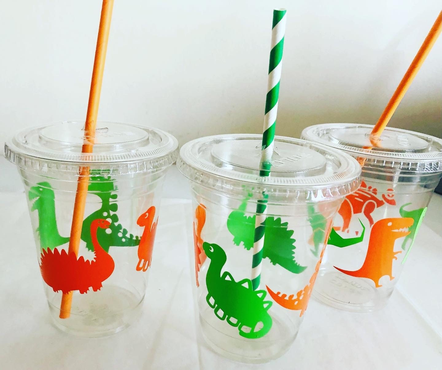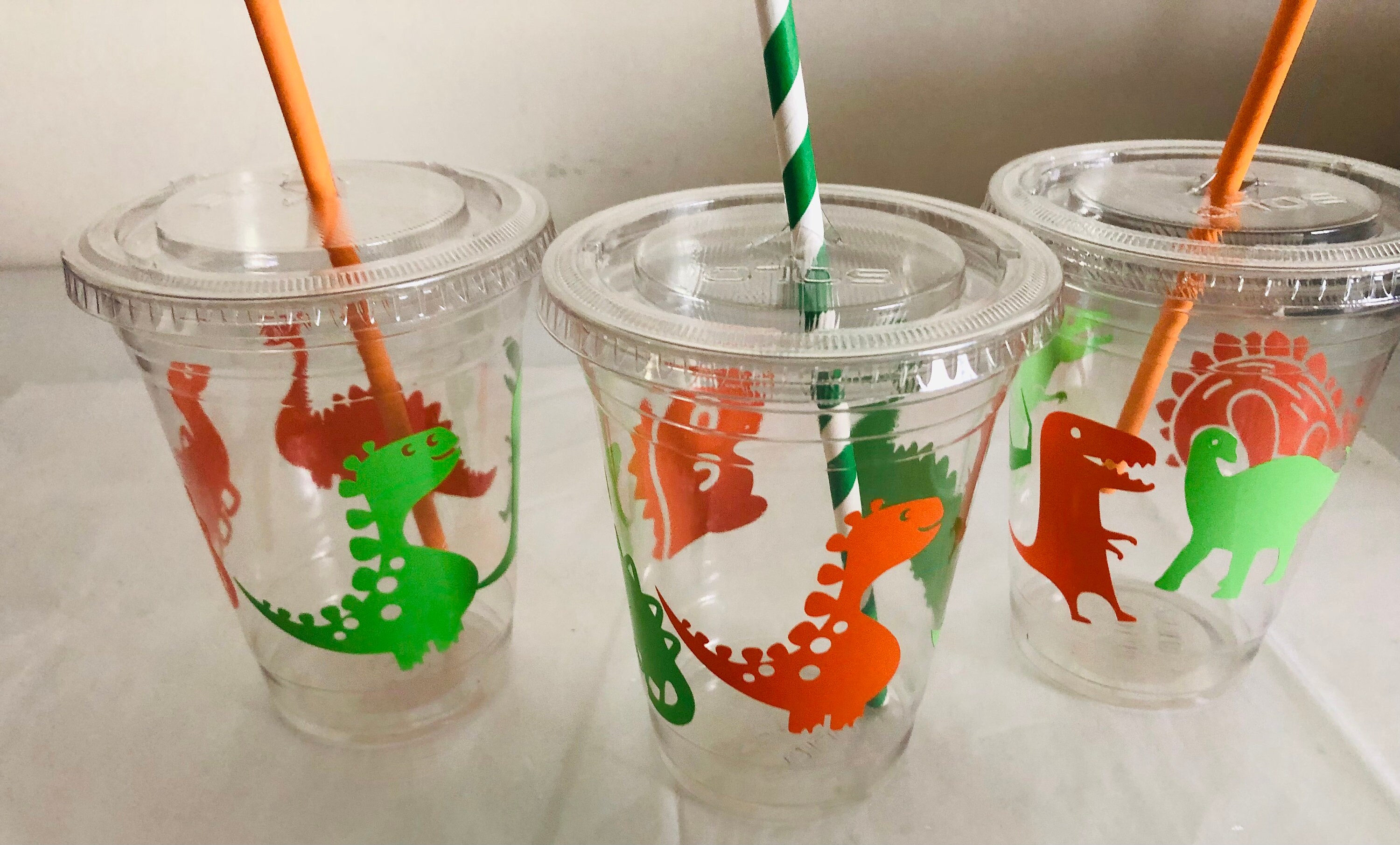 Dinosaur Birthday Party Cups: 16 oz Recyclable Plastic with Straws