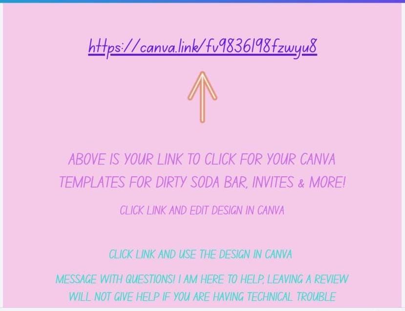 your order is for 20 editable in Canva designs for wedding invites, save the date, dirty soda bar and more.