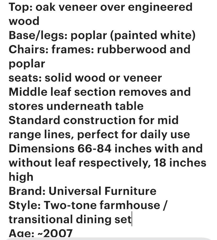 Universal Furniture Oak Dining Set with 5 Chairs, Vintage Farmhouse Style