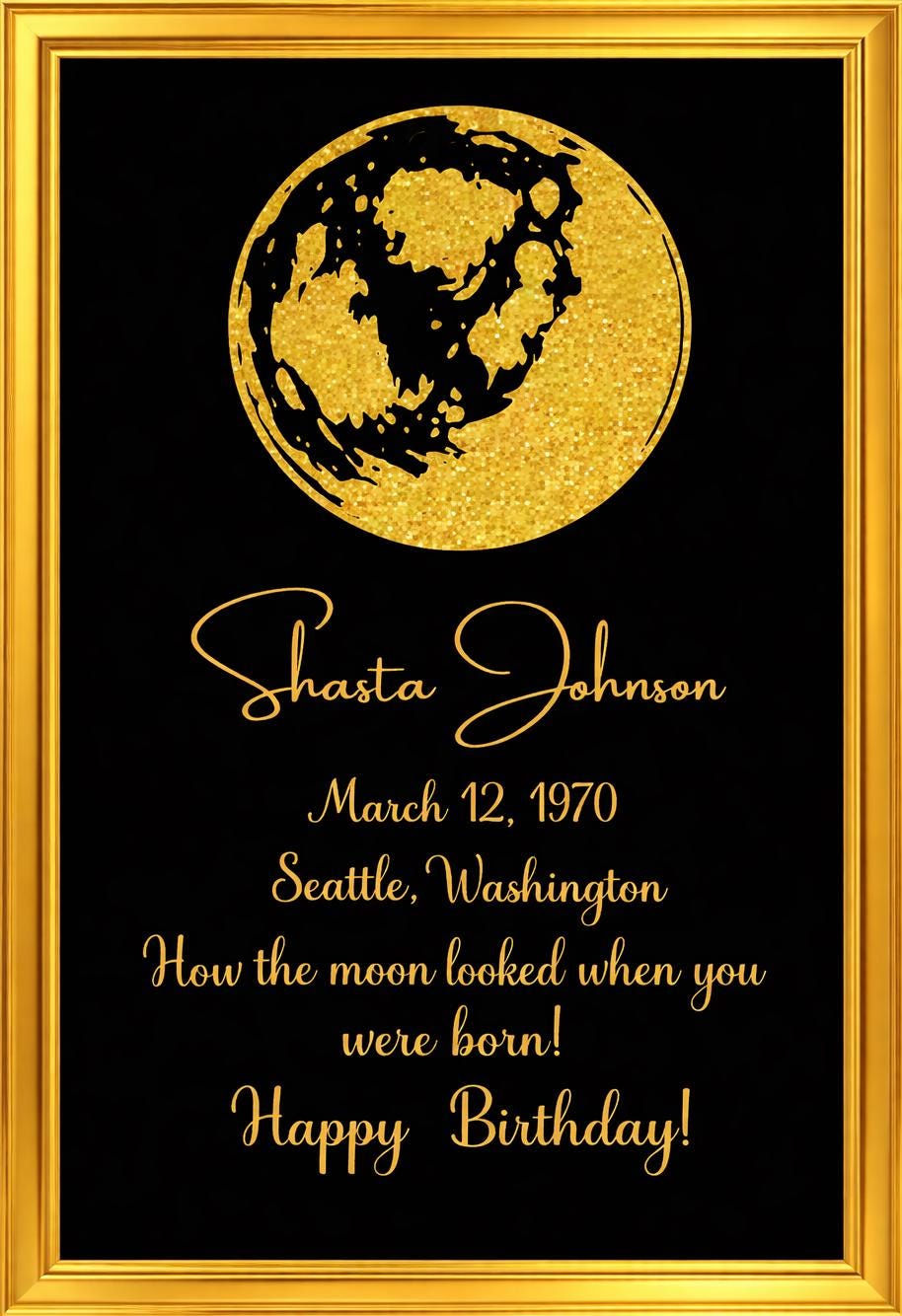 This personalized moon phase print shows exactly how the moon looked on a special date — creating a meaningful, one-of-a-kind keepsake.