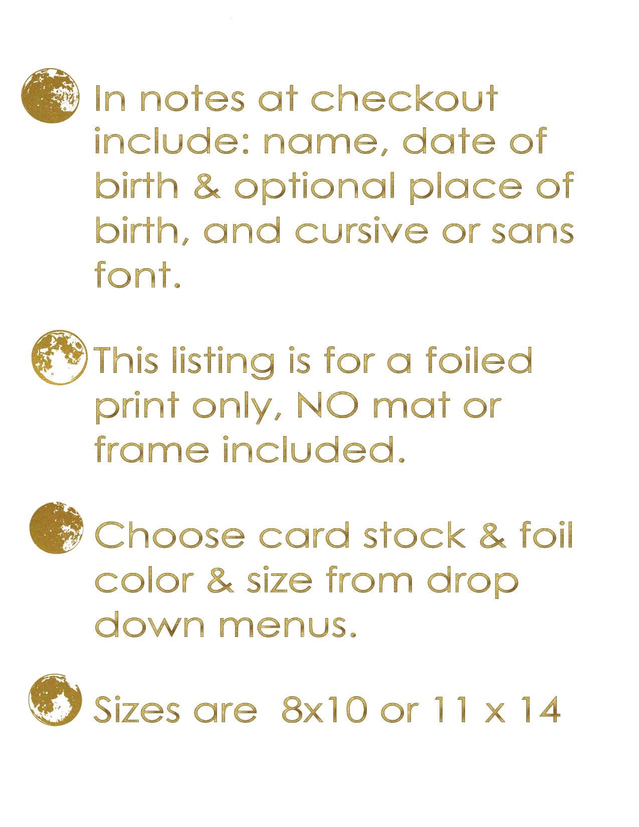 Personalized Moon Phase Foil Print | Custom Lunar Phase Art | Birthday Gift | Night Sky Print | Date & Location Gift (Unframed)