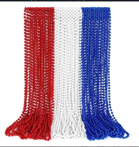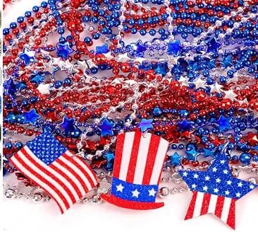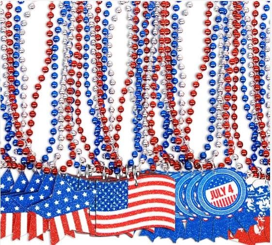 4th of July, Red, White Blue party Necklaces, plain beads or with pendant flags, uncle sam hat, star