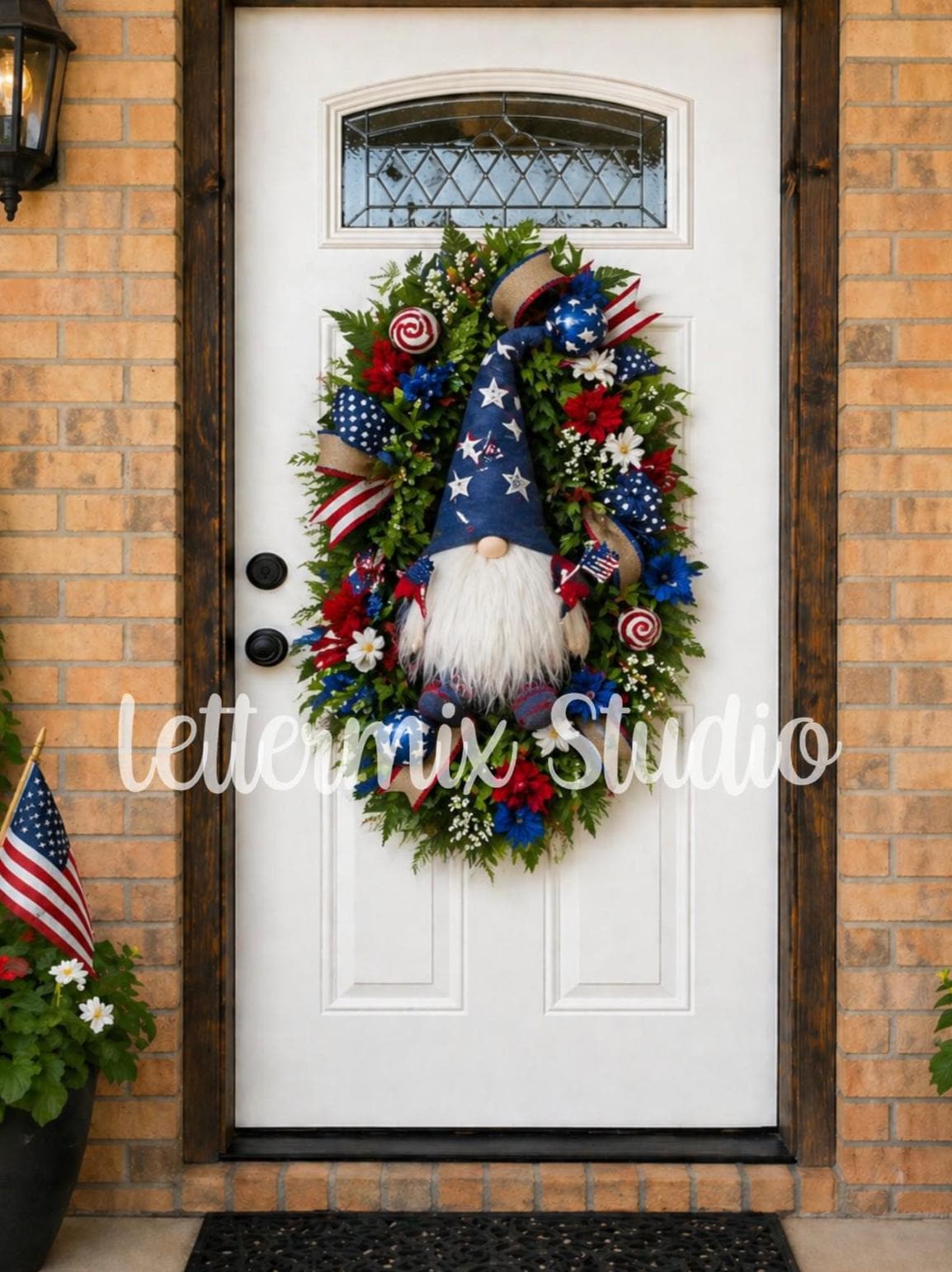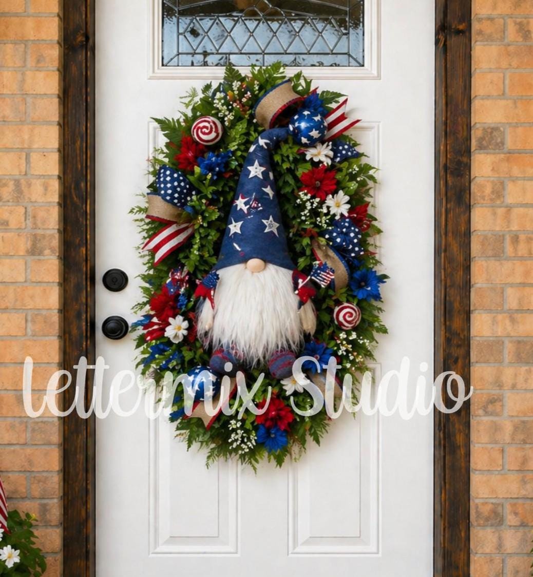 Celebrate in bold, patriotic style with this eye-catching Fourth of July Gnome teardrop swag wreath, 4 different styles and sizes on drop down menus. Designed to make your front door stand out all summer long 🇺🇸